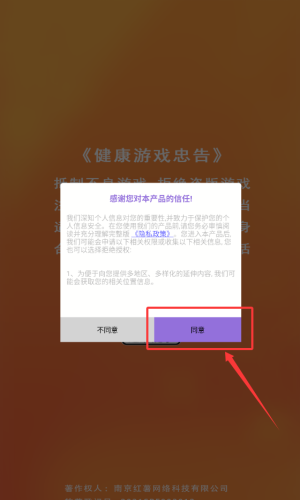 1、点击同意按钮,授权健康忠告与隐私协议。