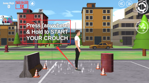2、长按屏幕,控制角色开始下蹲蓄力。