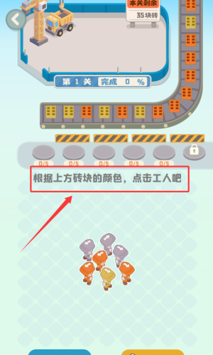 4、点击屏幕即可移动工人,他们将自动前往目标区域搬运砖块。