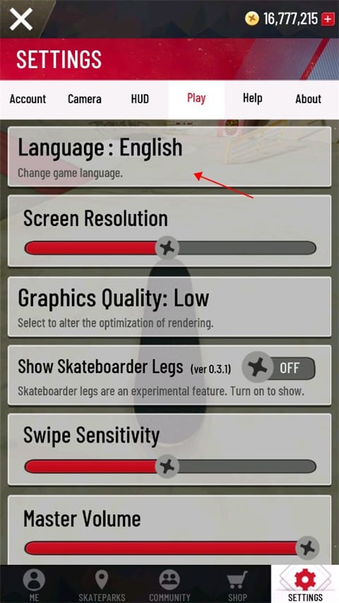 3、带你就下方settings,点击play,然后点击language,往下滑动找到simplified chinese,即可切换语言为简体中文;