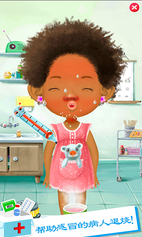 你害怕看医生吗?牙医呢?友好型儿科医生回来帮助你!今天,你就是米加小镇城市医院里面的小小医生,你即将要接受到属于你的任务:照顾三位调皮捣蛋的小病人!调皮的他们常常会因为粗心不小心受伤:骑自行车的时候摔倒,普通的流感导致的感冒,甚至不肯刷牙导致蛀牙和更多!现在需要你用医生的工具去对他们进行包扎,让他们吃药!还要尝试用强大的X光机来定位和进行修复骨折的膝盖!