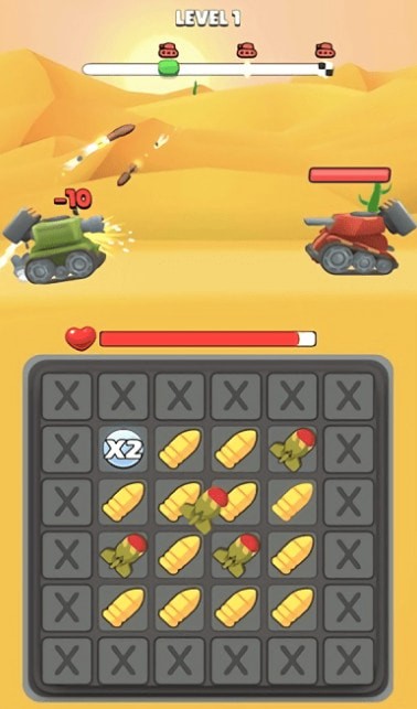 你需要去不断地解锁新的坦克,并在对战之中通过消除道具来发起致命攻击。