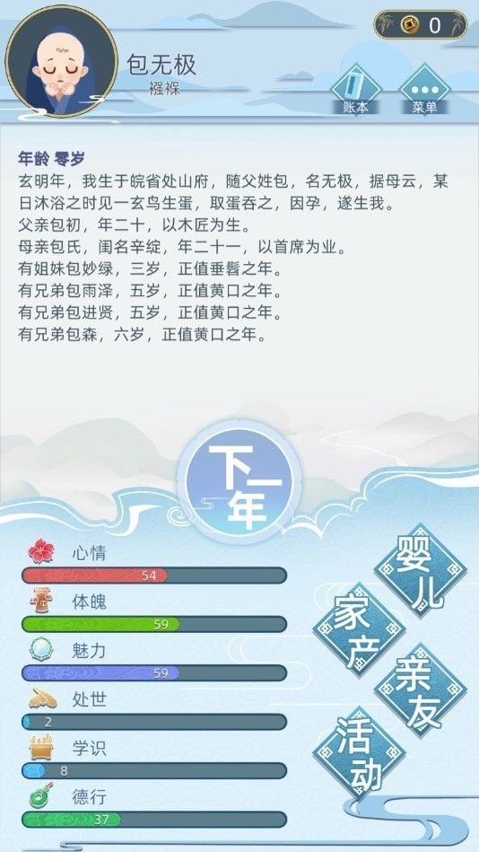 古代人生模拟器手机版是一款模拟玩法的,玩家在游戏中穿越回了古代,体验古代人的生活和那个年代发生的故事,丰富的玩法增加了游戏的乐趣和可玩性,感兴趣的玩家快来下载体验吧!
