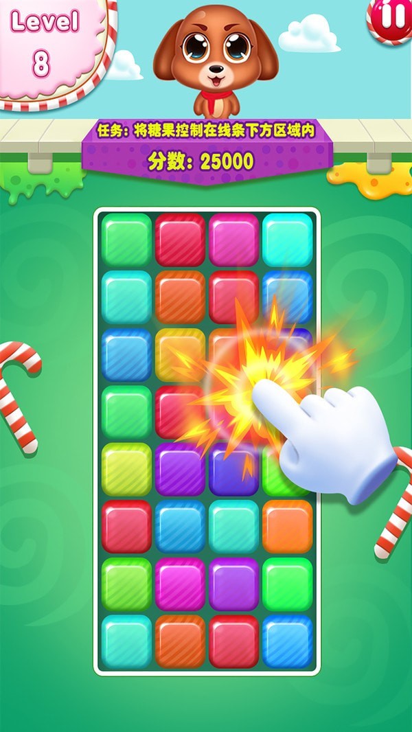 消灭糖果:糖果版的消灭星星,两个或两个以上同色糖果就可消除得分.