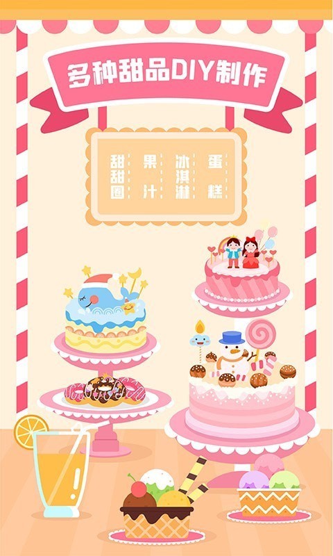 【精心制作】不同操作流程的甜品,粉色梦幻的奶油蛋糕,好吃清爽的冰淇淋,圆滚滚的甜甜圈,回味无穷的魅力果汁。轻松制作,无限乐趣;