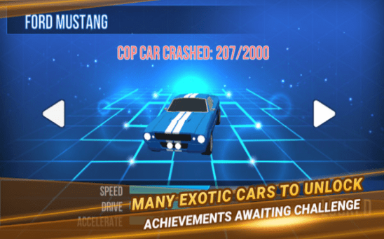 加入赛车冒险,在紧张刺激的追车挑战中坚持更久,得到更多的分数来解锁其他的更高级的车子。