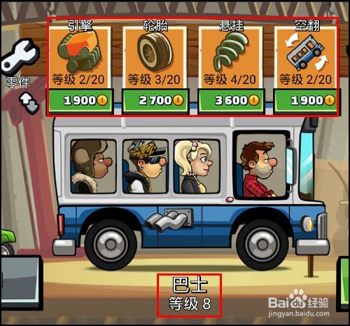 升级和装备其它车辆也是这种方法,这是我的巴士,已经升级到8级了,如图所示