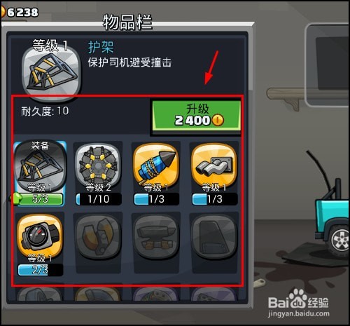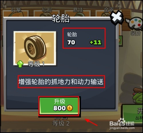 选择要升级的部件,先查看升级后的好处和作用,等级越高升级耗费的金币越多,如图所示
