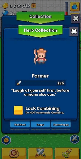 1、像素风格的放置合成单机小游戏,游戏玩法非常简单,就是不断合成更高级的英雄。
