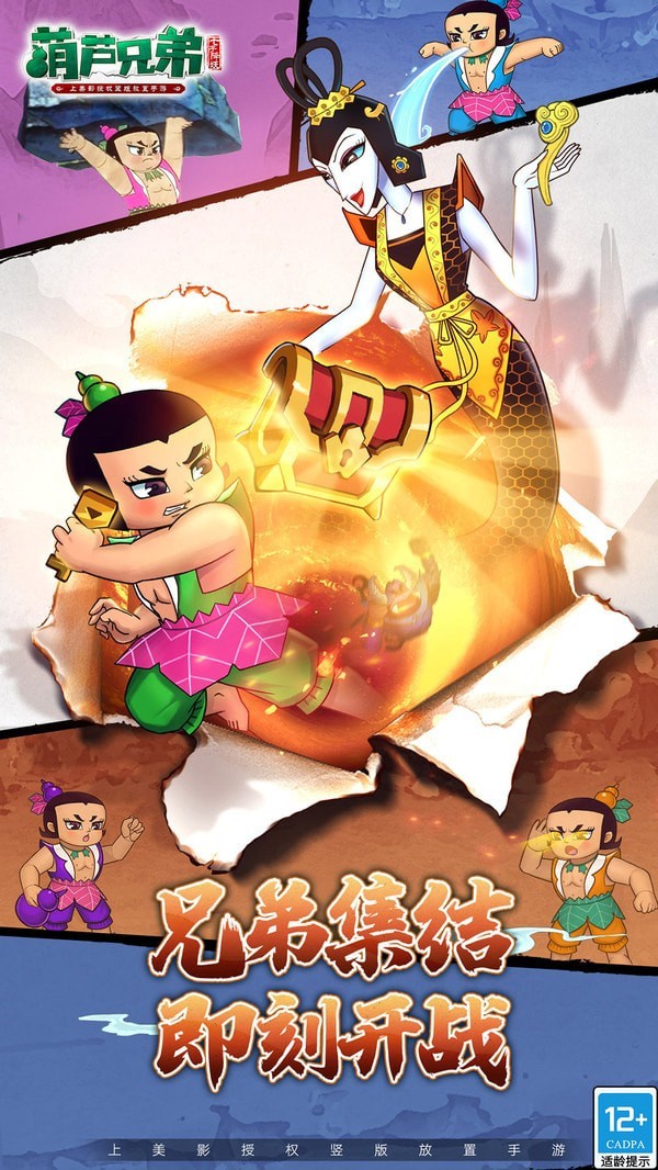 由上海美术电影制片厂正版授权,以86年剪纸风《葫芦兄弟》动画片为原型的手游大制,深度还原情节。轻松练级,休闲挂机,忙时经验不错过,上线挑战奖励多丰富,您可以和葫芦七兄弟共闯妖巢!带领葫芦兄弟披荆斩棘,洞破妖洞大门!保住穿山甲,救出爷爷,就在《葫芦兄弟-七子降妖》!