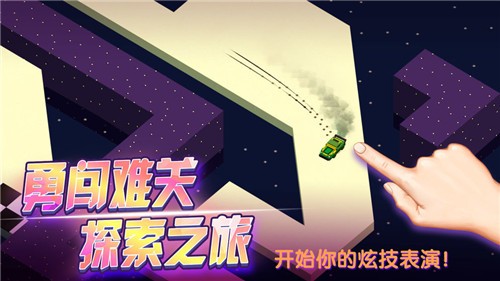 1、点击屏幕两侧控制车辆左右漂移,达到终点即可过关;