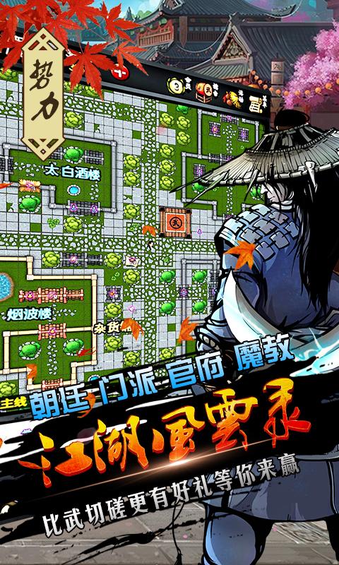 江湖风云录游戏是一款武侠风格的角色扮演类游戏,游戏将带你来到一个真实的江湖,你可以选择勤勤恳恳练功,也可以游历名山大川,探寻天下估计,只要得到奇遇便可一飞冲天,当然你也可以携手红颜,不问江湖事!