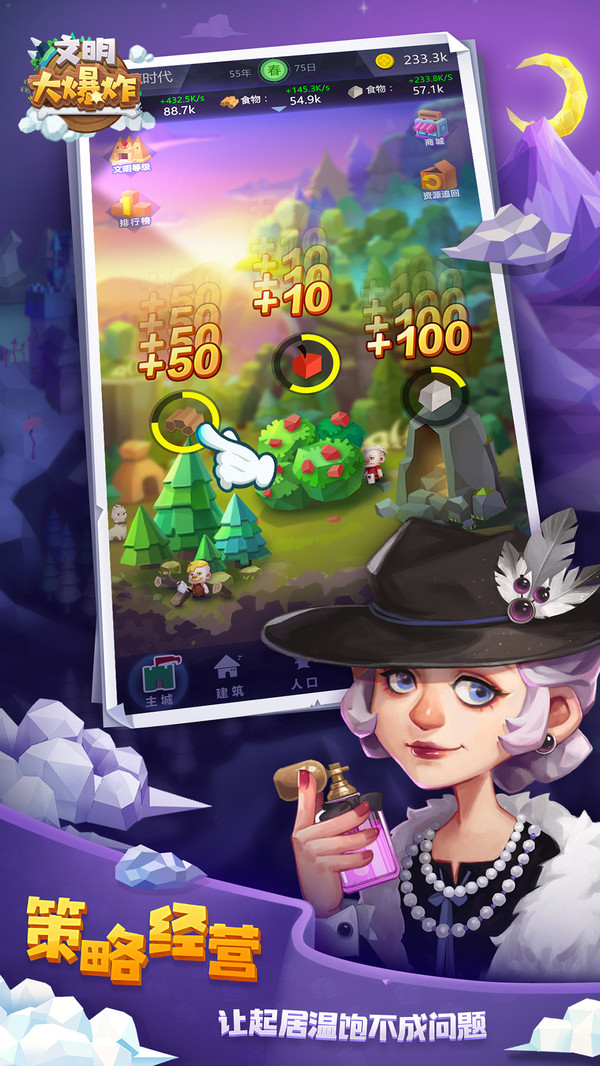 2、这个国度的人口数量、建筑规模、文明程度,都由你决定。想要让你的国度和谐发展,还需要在经营策略上下功夫哦!