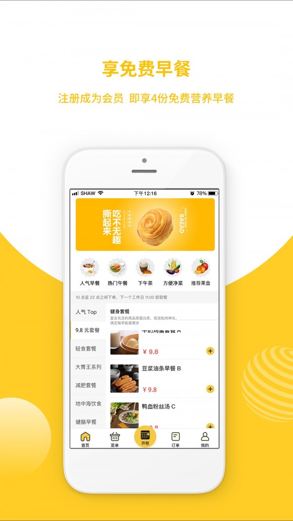 2、这样有丰富多样的早餐饮食可以任意选择下单。