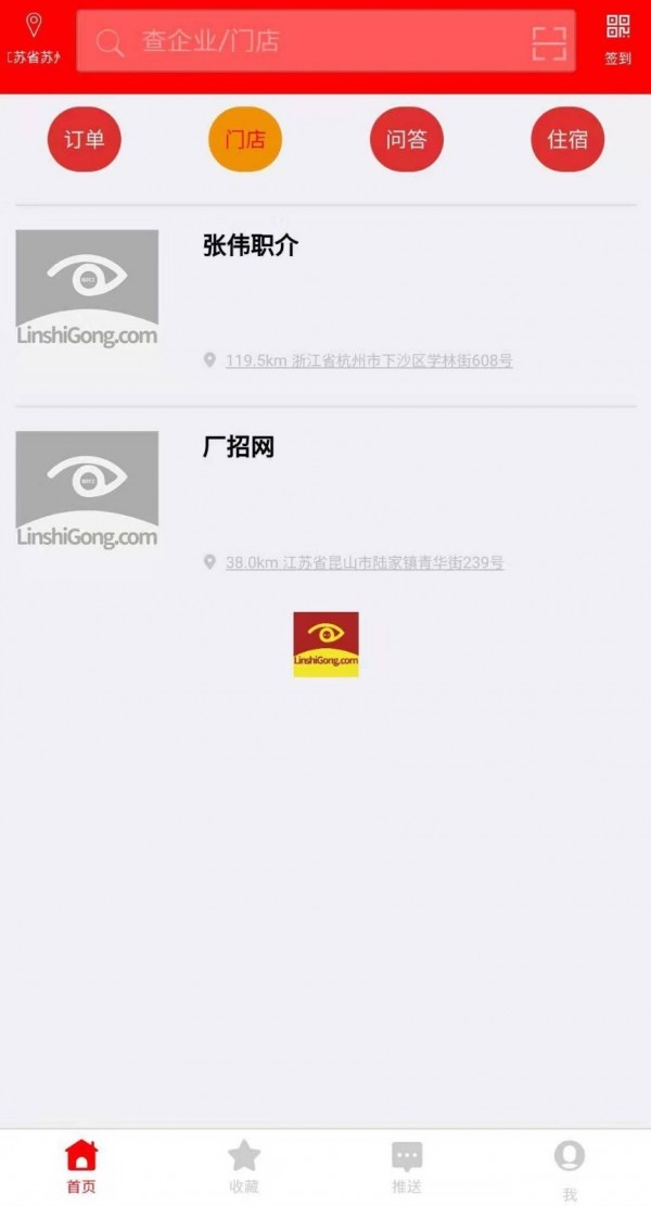 1、在首页中就可以搜索查询企业或者门店了,为你提供多种招工信息