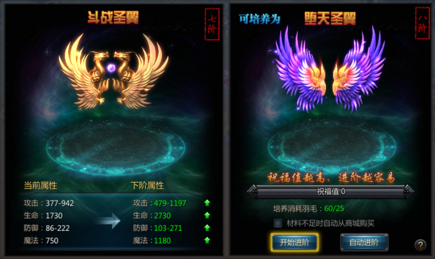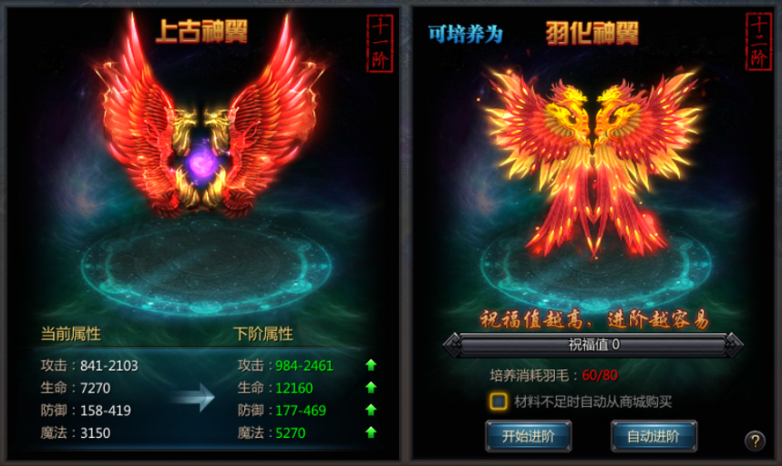 3.祝福值越高,升阶成功率就越高,当祝福值达到满值时,光翼进阶将100%成功。