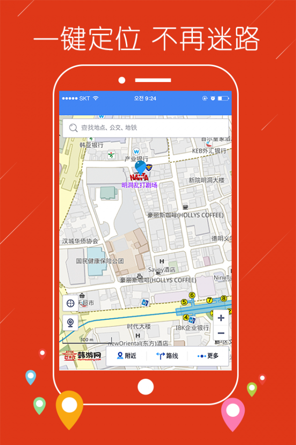 韩游网地图app是韩国旅游专业的精度最高的免费手机地图,是韩国自由行游客必备的中文版韩国电子地图!拥有韩国GPS定位导航功能,韩国地铁大巴等公共交通路线查询,步行路线导航以及全韩国街景图,拥有韩国精准的地点信息,及韩国旅游景点、购物店、美食店、美容整形等地点信息。拥有韩国地铁路线图地铁交通路线查询等。