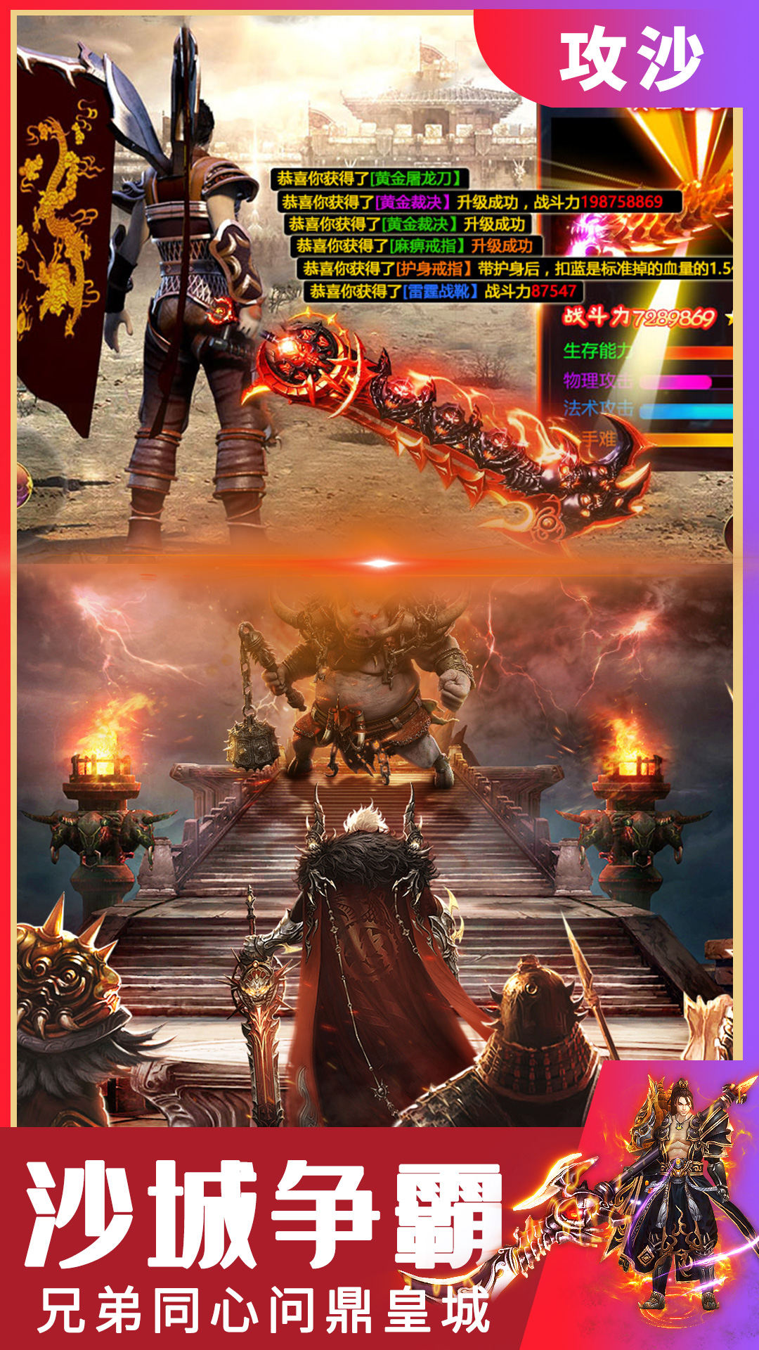 3、丰富的团战玩法,热血沙城、血战皇城、公会团战等等应有尽有,快来和兄弟们并肩作战吧。