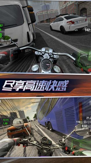 2、真实公路摩托锦标赛游戏背景音乐强大无比,各种操作带来的魅力也是巨大的,带有很承重的游戏沉浸感。