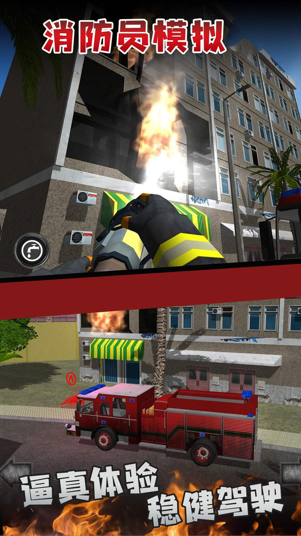 消防员模拟是一款角色扮演类的手机游戏,在游戏中,玩家们将会扮演一名消防员,玩家们需要去不断的解决游戏中的火灾,并且去解救身陷危机的人民群众,游戏的也有着很高的自由度,玩家们可以在游戏中自由的进行探索,感兴趣的玩家们快下载消防员模拟体验吧!