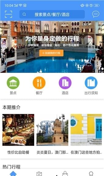澳门行是一款带用户去澳门旅游的软件,非常适合喜欢自由行的用户,软件会给用户推荐合适的旅游攻略,让用户可以很好的出行,在澳门哪里有景点,那些景点是必打卡的,用户通过软件全部都可以知道,让每个用户都能有愉快的旅行。