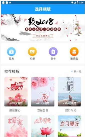 * 海量精品模板供你选择,无论你需要的是图集、语录、相册、贺卡、邀请函,音乐图说应有尽有,一应俱全。
